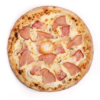 Salsa de tomate, orégano, mozzarella, bacon, chorizo y huevo